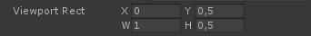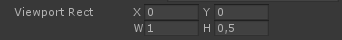 - Remplacez les valeurs Viewport Rect de la caméra "Player 2" par X: 0 Y: 0 W: 1 H: 0,5