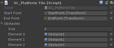 }- Attachez le script SC_PlatformTile à l'objet "TilePrefab"