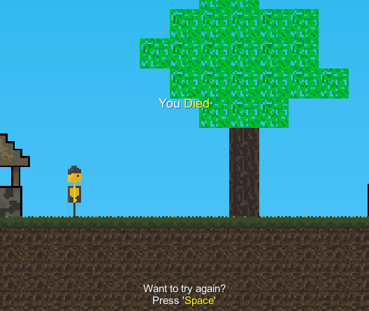 Et enfin, j'ai créé les étiquettes à l'écran à l'aide de UI Canvas pour afficher quand le joueur meurt et également une indication du bouton sur lequel appuyer pour redémarrer le niveau: