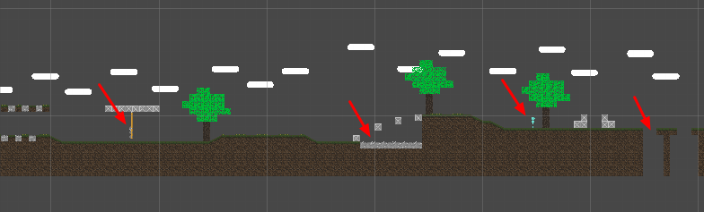 Le niveau contenait finalement 4 types d'obstacles: des pointes, des zombies, des haches oscillantes et des trous dans le sol: