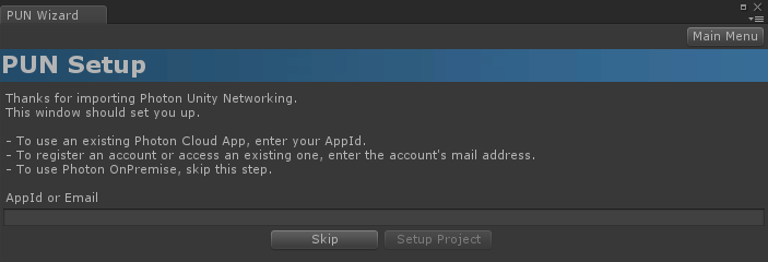 - Dans l'assistant PUN, cliquez sur "Setup Project", collez votre identifiant d'application puis cliquez sur "Setup Project"