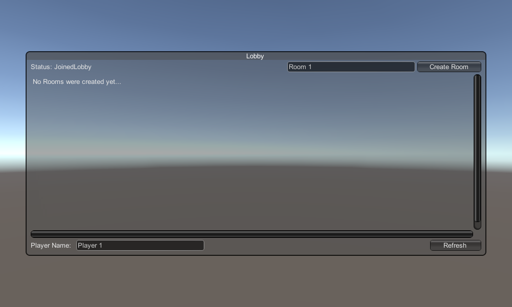 Commençons par créer une scène Lobby qui contiendra la logique du Lobby (Parcourir les salles existantes, créer de nouvelles salles, etc.):