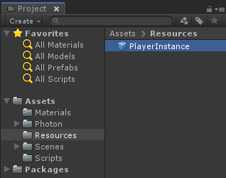 - Enregistrez l'instance de lecteur dans Prefab et déplacez-la vers le dossier appelé Ressources (s'il n'existe pas de dossier de ce type, créez-en un). Cette étape est nécessaire pour pouvoir générer des objets multijoueurs sur le réseau.