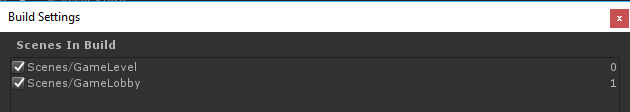 - Ajoutez à la fois MainMenu et GameLevel aux paramètres de construction.
