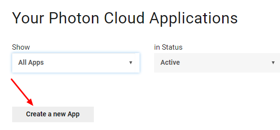 - Accédez à la page Applications en cliquant sur l'icône de profil puis "Your Applications" ou suivez ce lien: https://dashboard.photonengine.com/en-US/PublicCloud