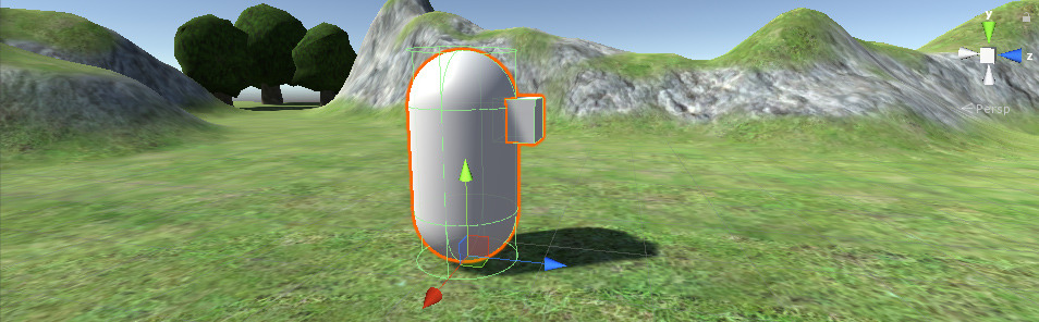 - Ajoutez un corps de joueur (dans mon cas, j'utiliserai une simple capsule avec un cube, mais vous pouvez ajouter un modèle de joueur si vous en avez). Réduisez-le jusqu’à la taille souhaitée.