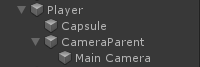 - Créez un nouveau GameObject et nommez-le "CameraParent" et déplacez-le à l'intérieur de l'objet "Player", changez sa position en (0, 1.64, 0)