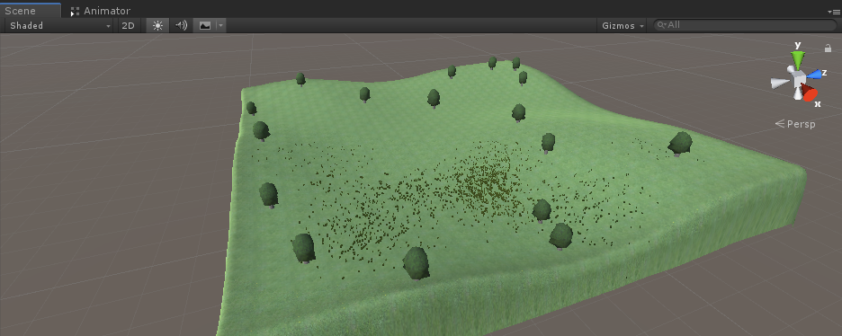 Pour le niveau, j'utiliserai un terrain simple avec de l'herbe et des arbres: