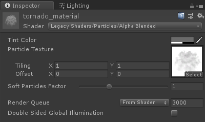 - Changez son Shader en "Legacy Shaders/Particles/Alpha Blended"